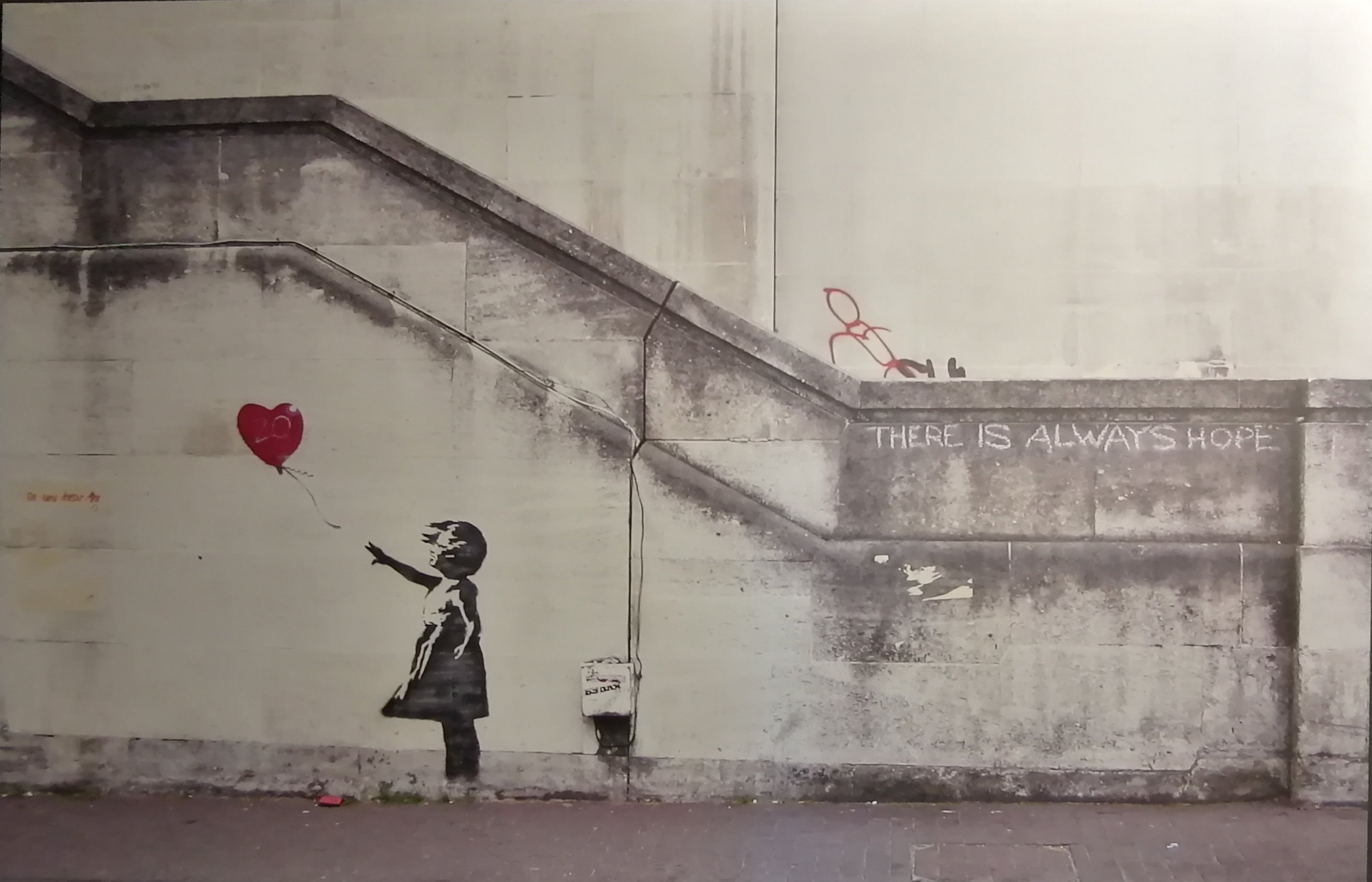 Sostenitore di una visione dell’arte come espressione del reale, Bansky ricorre ad una grande varietà di soggetti come topi, scimmie, bambini ma anche membri della Royal Family per rappresentare con un fare tagliente ed incisivo vizi e virtù dell’umano.